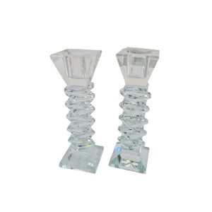 CRYSTAL/SILVER SPOOL SQUARE PAIR CANDLESTICKS 15 CM.