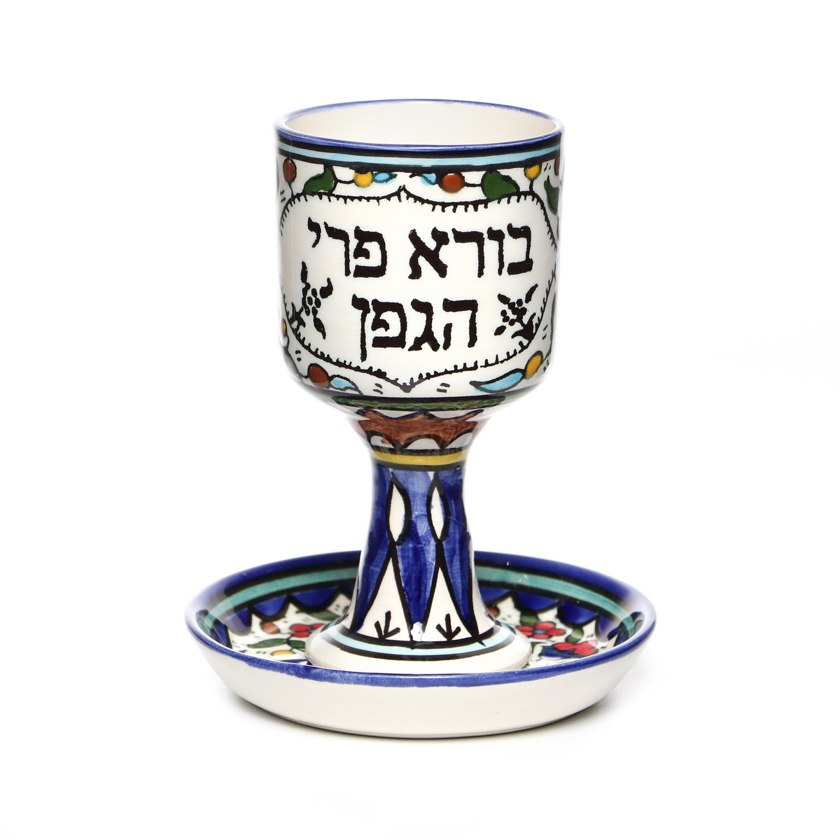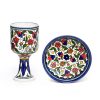 ARMENIAN FLOWERS KIDUSH CUP+DEEP SAUCER
