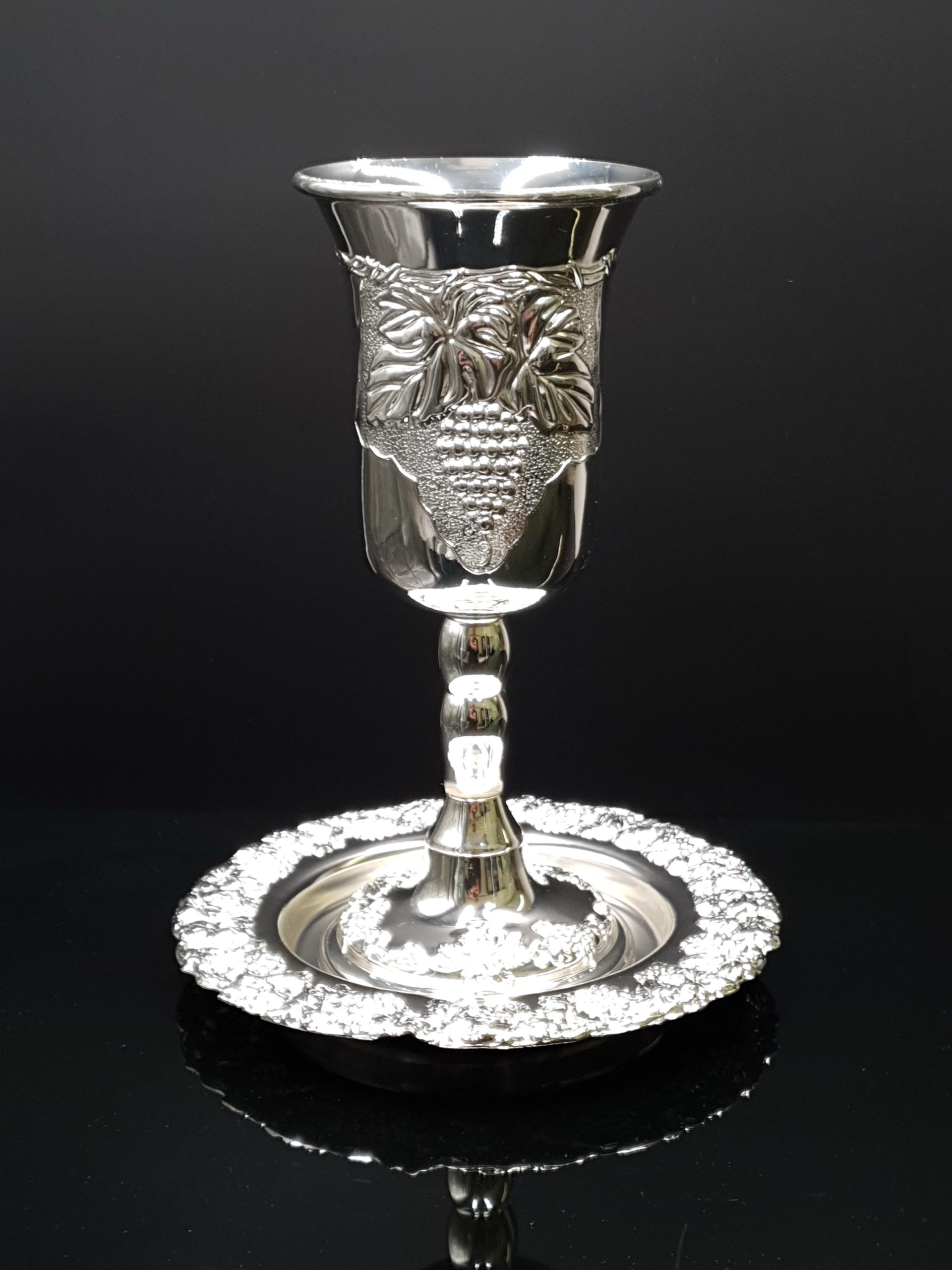 SILVER PLATED “GRAPES” ELIJAH CUP/SREM/SAUCER 23 CM.