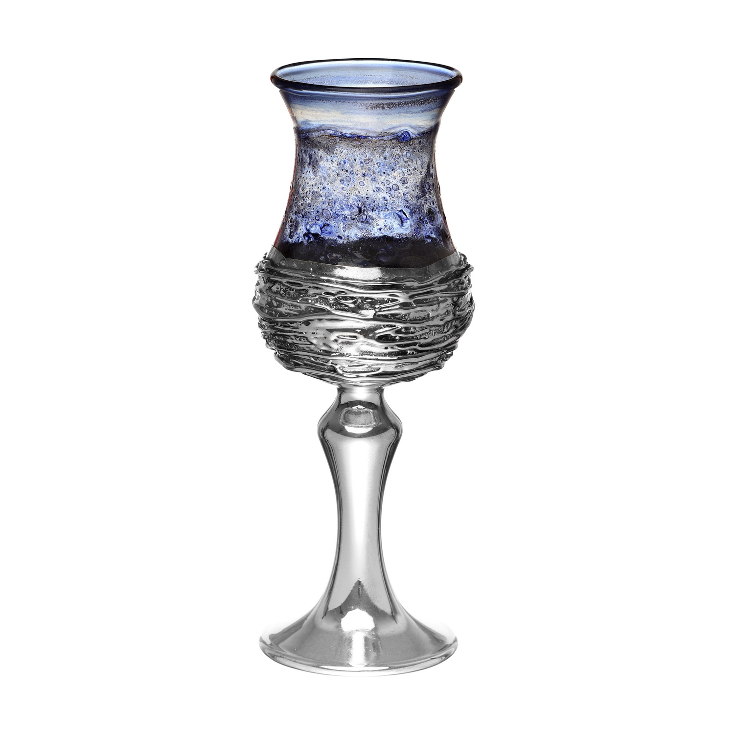GLASS S “WIRE” KIDUSH CUP/GLASS SAUCER