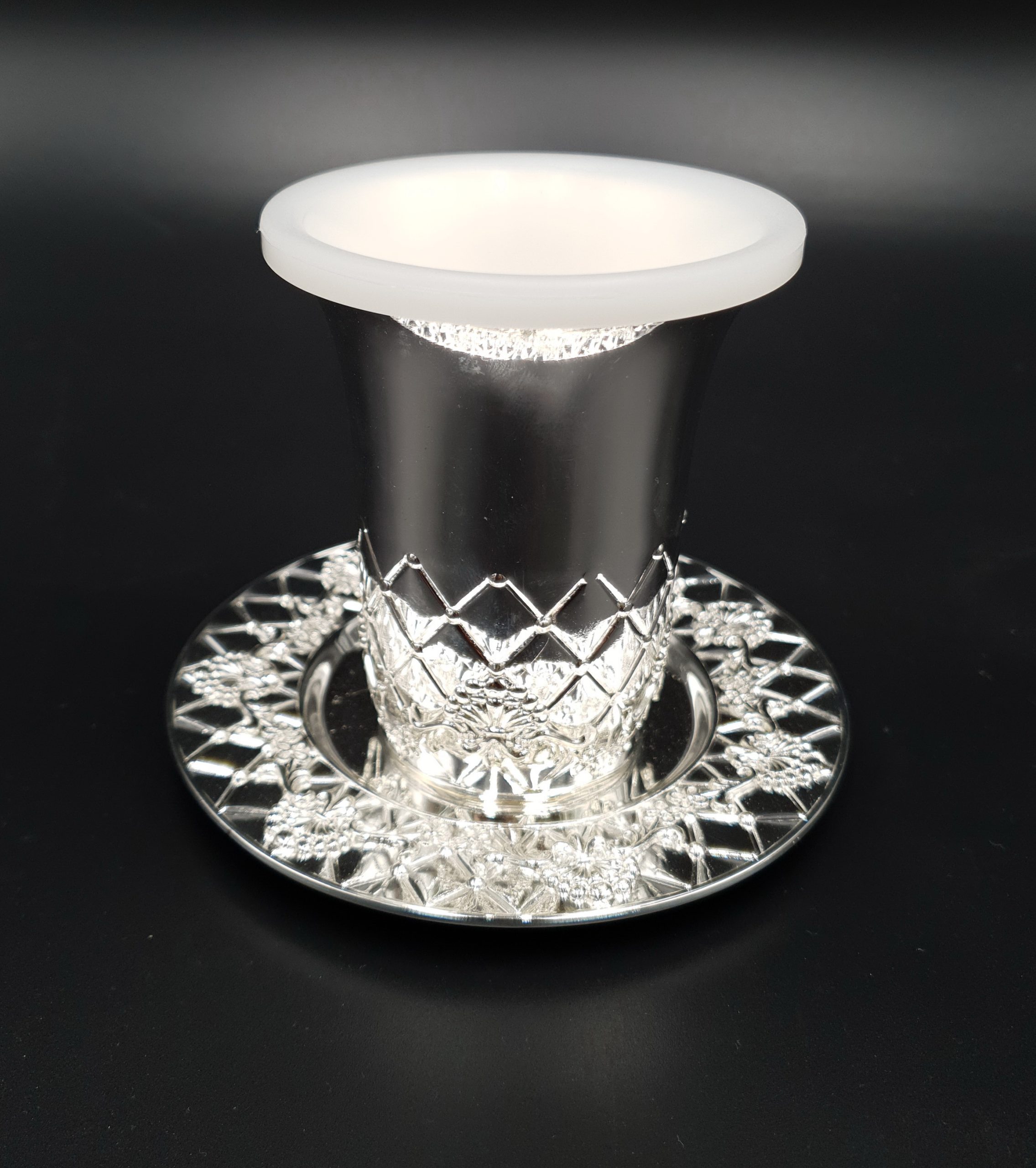 SILVER PLATED/PLASTICK COVER “RHOMBUSES” KIDDUSH CUP
