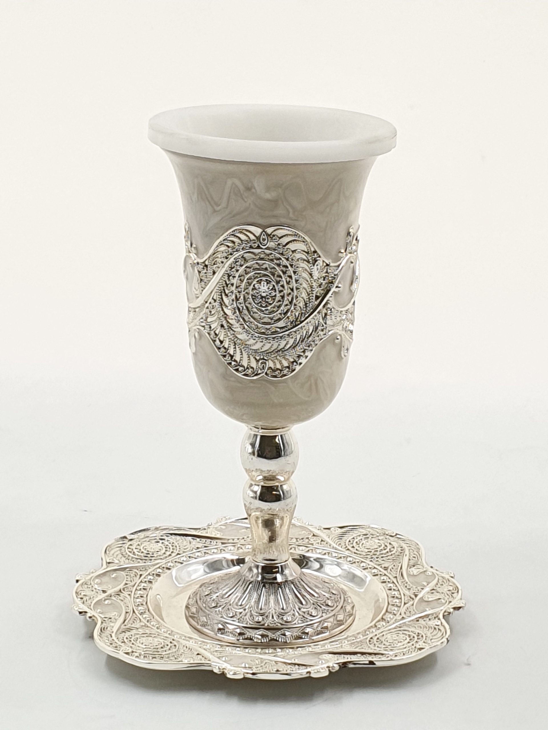 / ENAMEL/SILVER PLATED/PLASTIC COVER KIDDUSH CUP/STEM/SAUCER