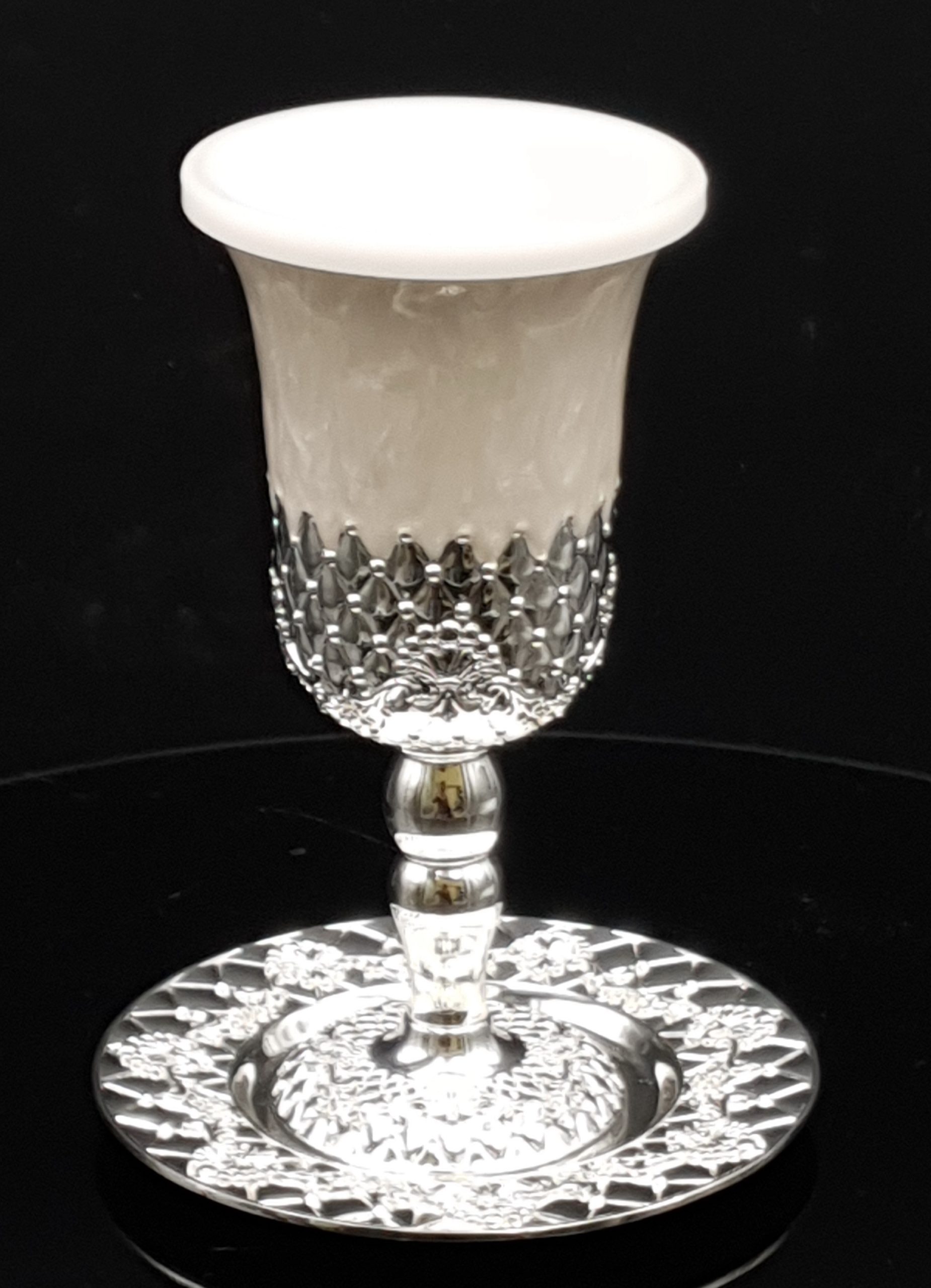 / SILVER PLATED/ENAMEL RHOMBUSES KIDDUSH CUP/STEM/SAUCER