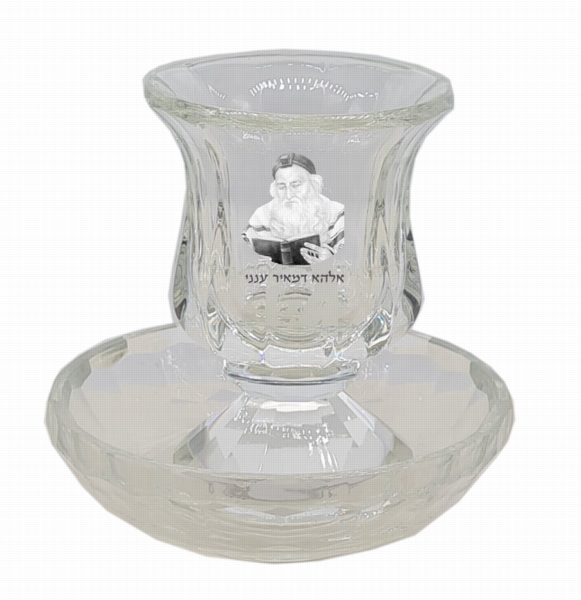 CRYSTAL “RABBI MEIR” KIDUSH CUP/STEM/SAUCER