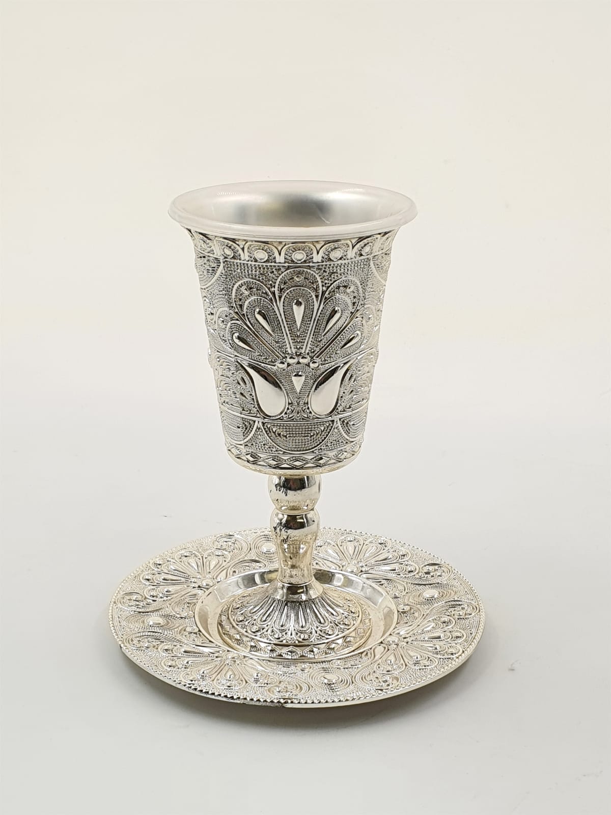FILIGREE/PLASTIC COVER KIDDUSH CUP/STEM/SAUCER