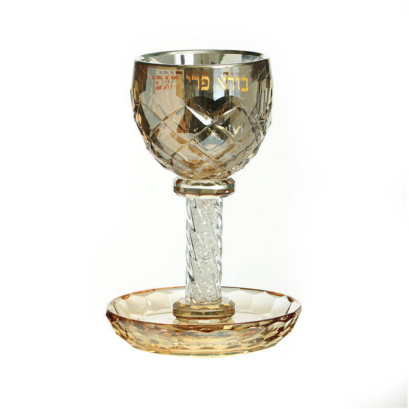 / GOLDEN CRYSTAL/SPARKS “BORE PERI” KIDUSH CUP/STEM/SAUCER