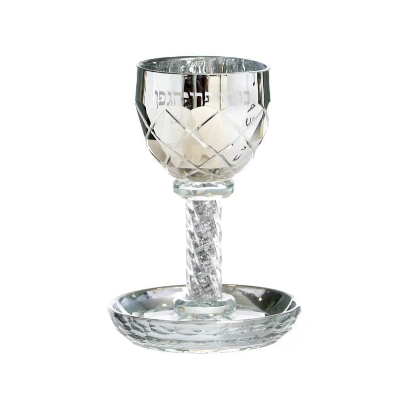 CRYSTAL/SPARKS “BORE PERI” KIDUSH CUP/STEM/SAUCER