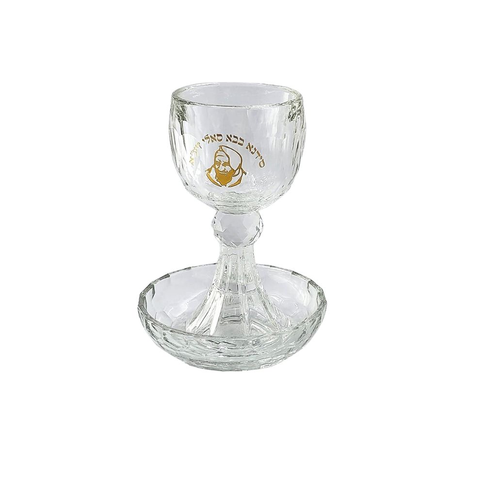 CRYSTAL/GOLDEN “BABAH SALI” KIDUSH CUP/STEM/SAUCER