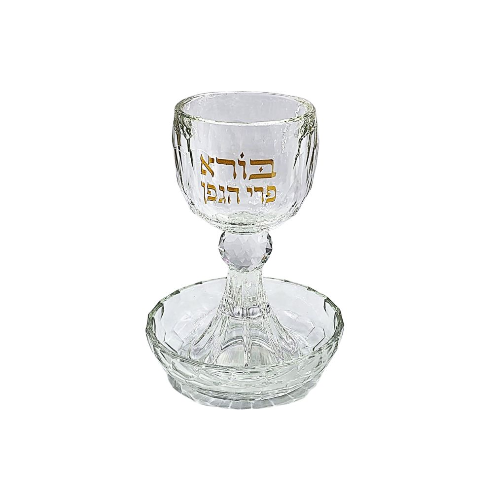 / CRYSTAL/GOLDEN “BORE.. ” KIDUSH CUP/STEM/SAUCER