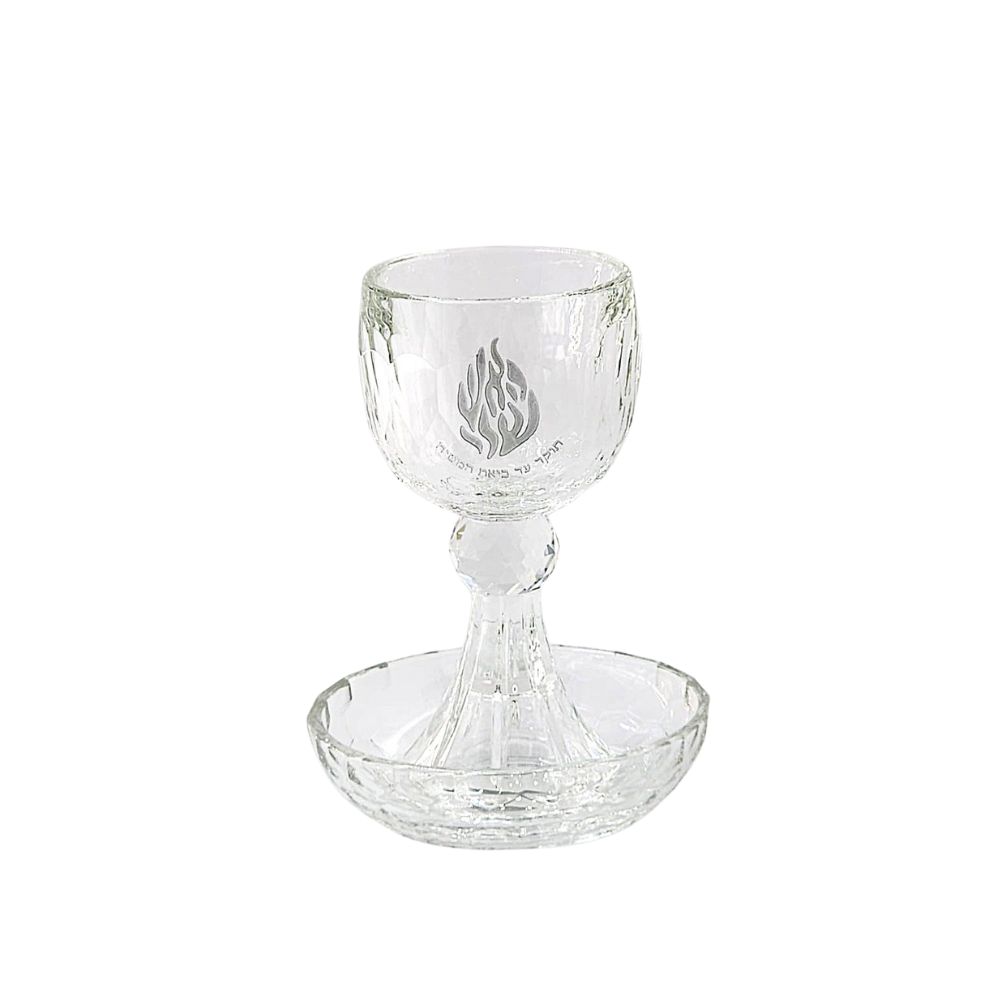 CRYSTAL/SILVER “MY FIRE” KIDUSH CUP/STEM/SAUCER