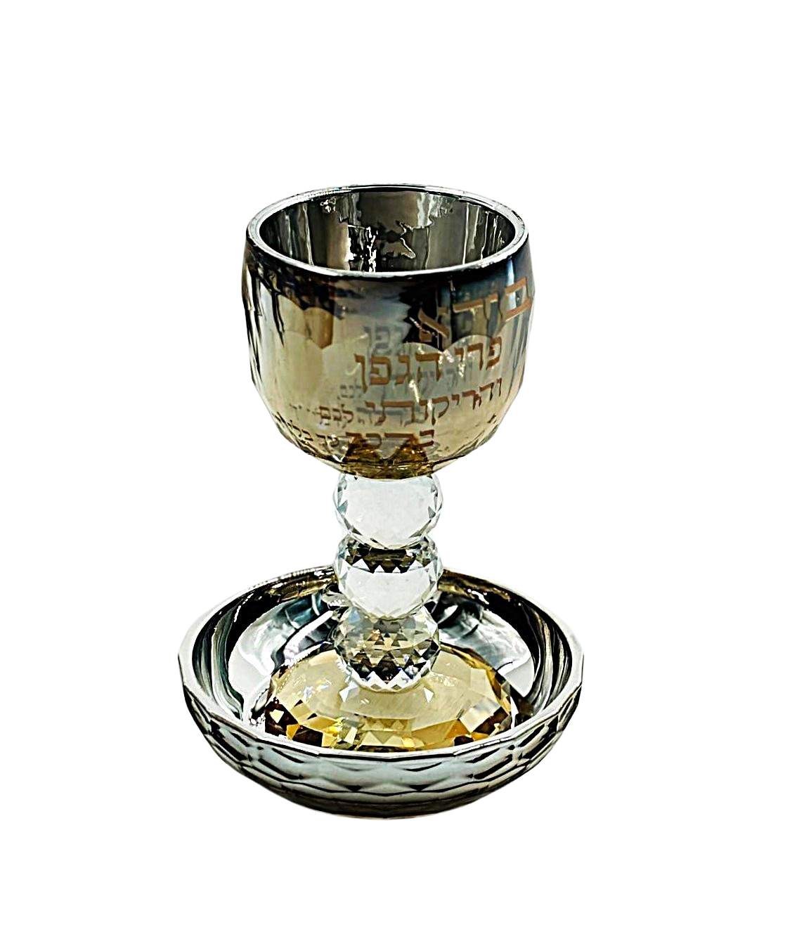 CRYSTAL GOLDEN KIDUSH CUP W/STEM/SAUCER 16 CM.