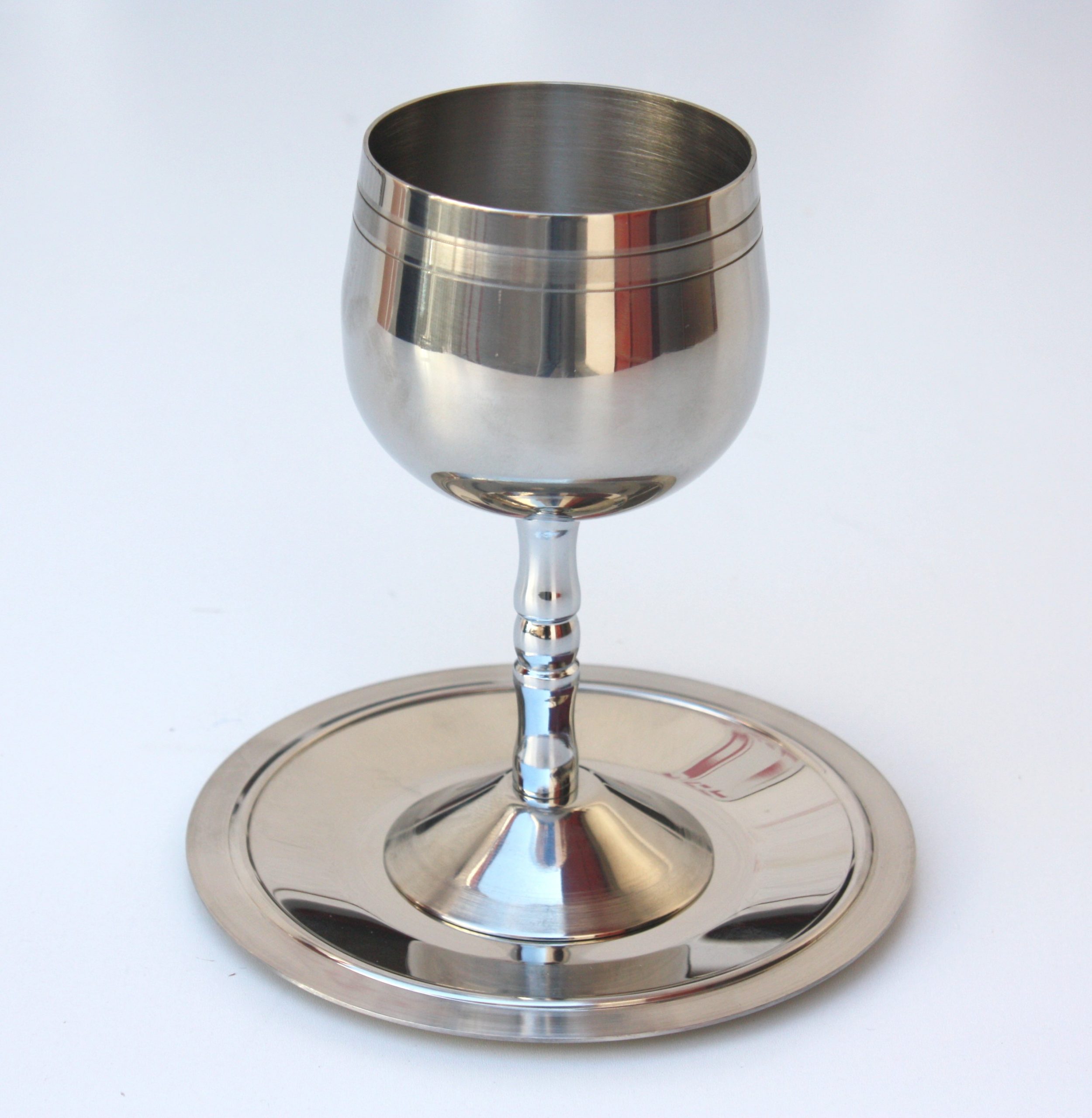 / STAINLESS STEEL/SILVER STRIPE KIDUSH CUP/STEAM/SAUCER