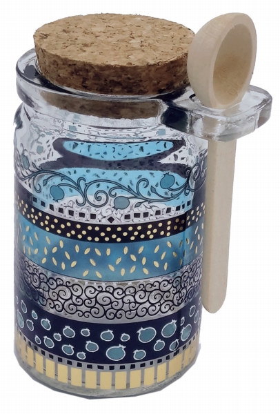 GLASS BLUE TONES HONEY DISH W/SPOON