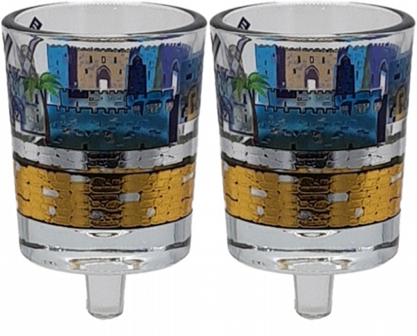 / BLUE ETCHING JERUSALEM PAIR OIL NERONIM CUPS