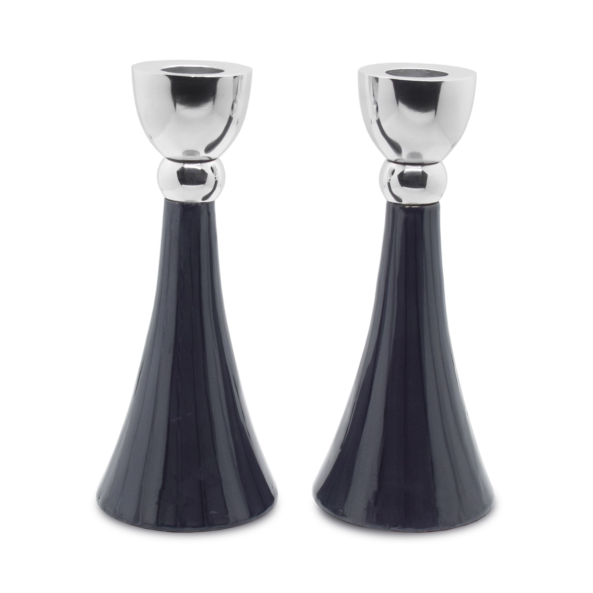 ALUMINIUM DARK GREY PAIR CANDLESTICKS 17 CM.