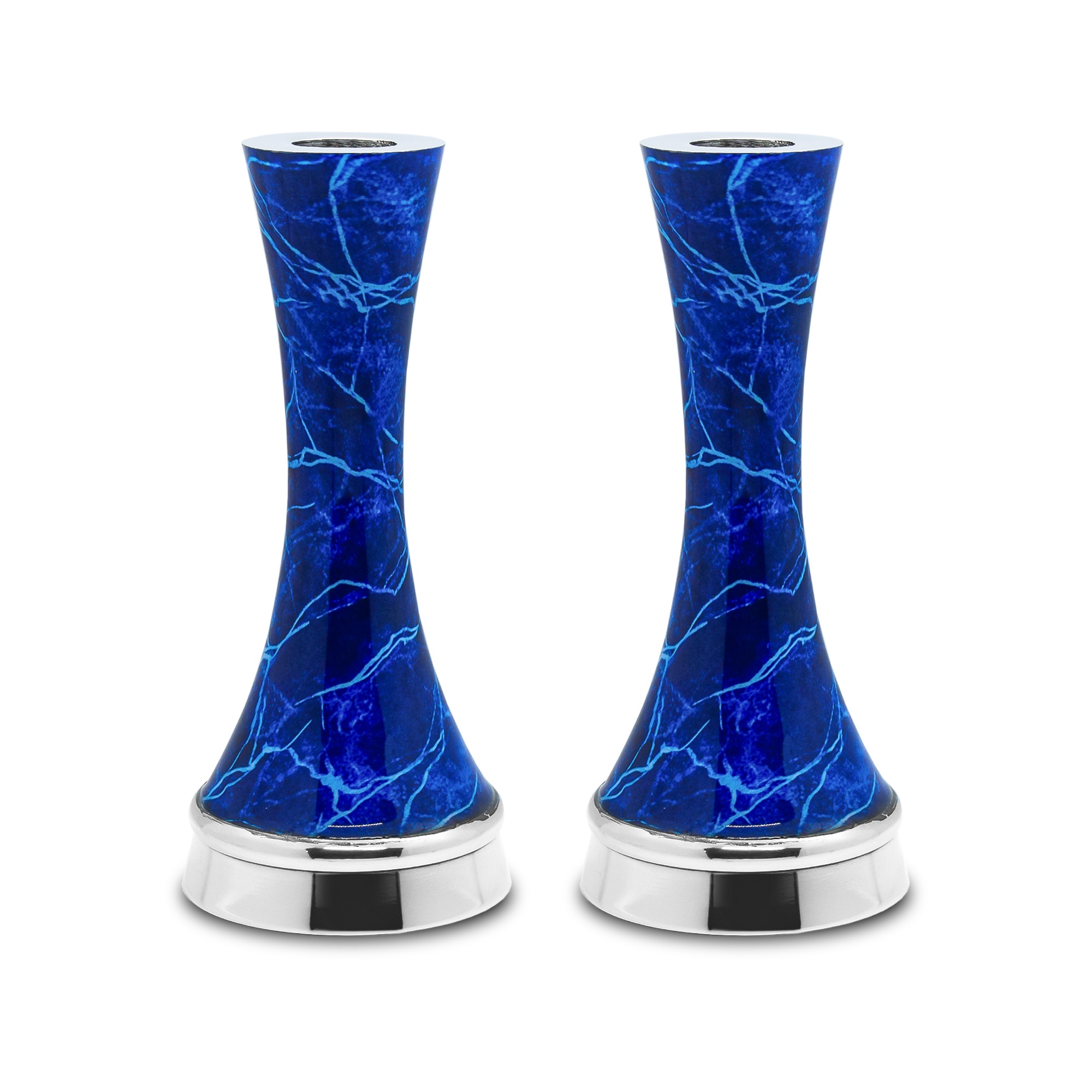 ALUM.FAUX MARBLE BLUE/TURQUOISE PAIR CANDLESTICKS 17 CM