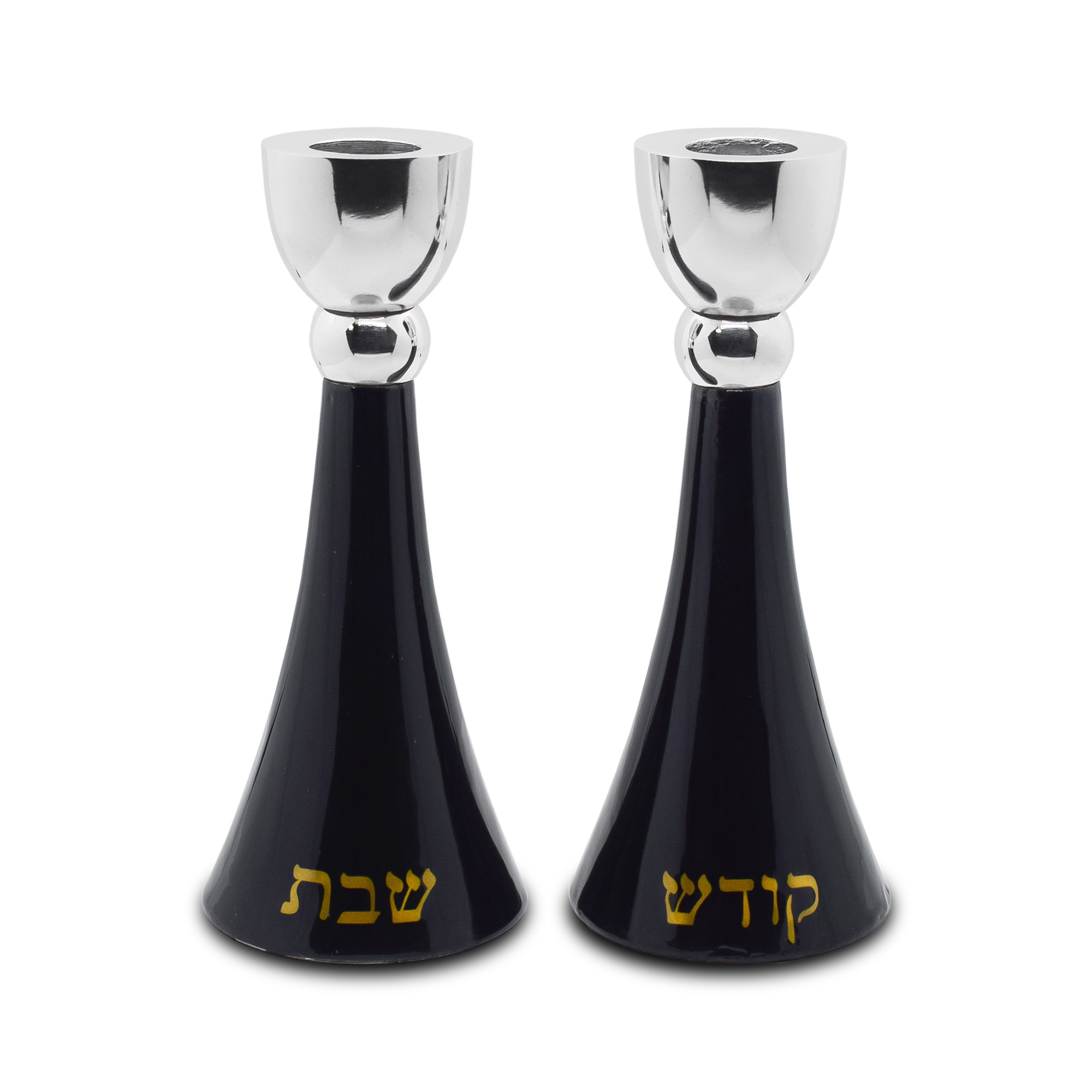 ALUMINIUM BLACK/SHBBAT KODESH PAIR CANDLESTICKS 17 CM.
