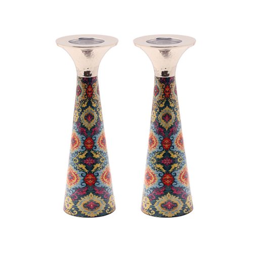 CONE COLORFUL EMBROIDERY PAINTED TALL PR. CANDLESTICKS