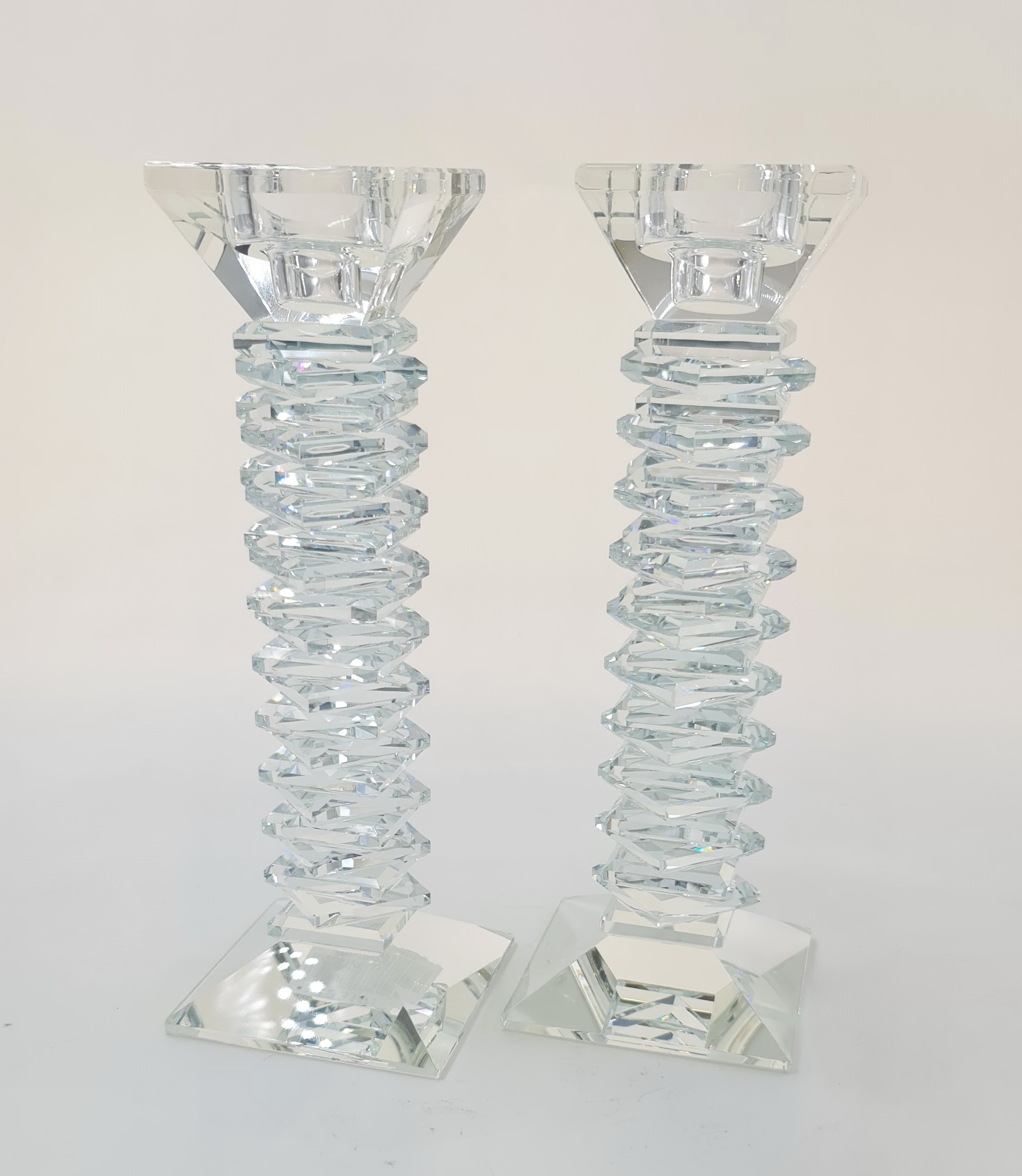 CRYSTAL STEP PAIR CANDLESTICKS 22 CM.