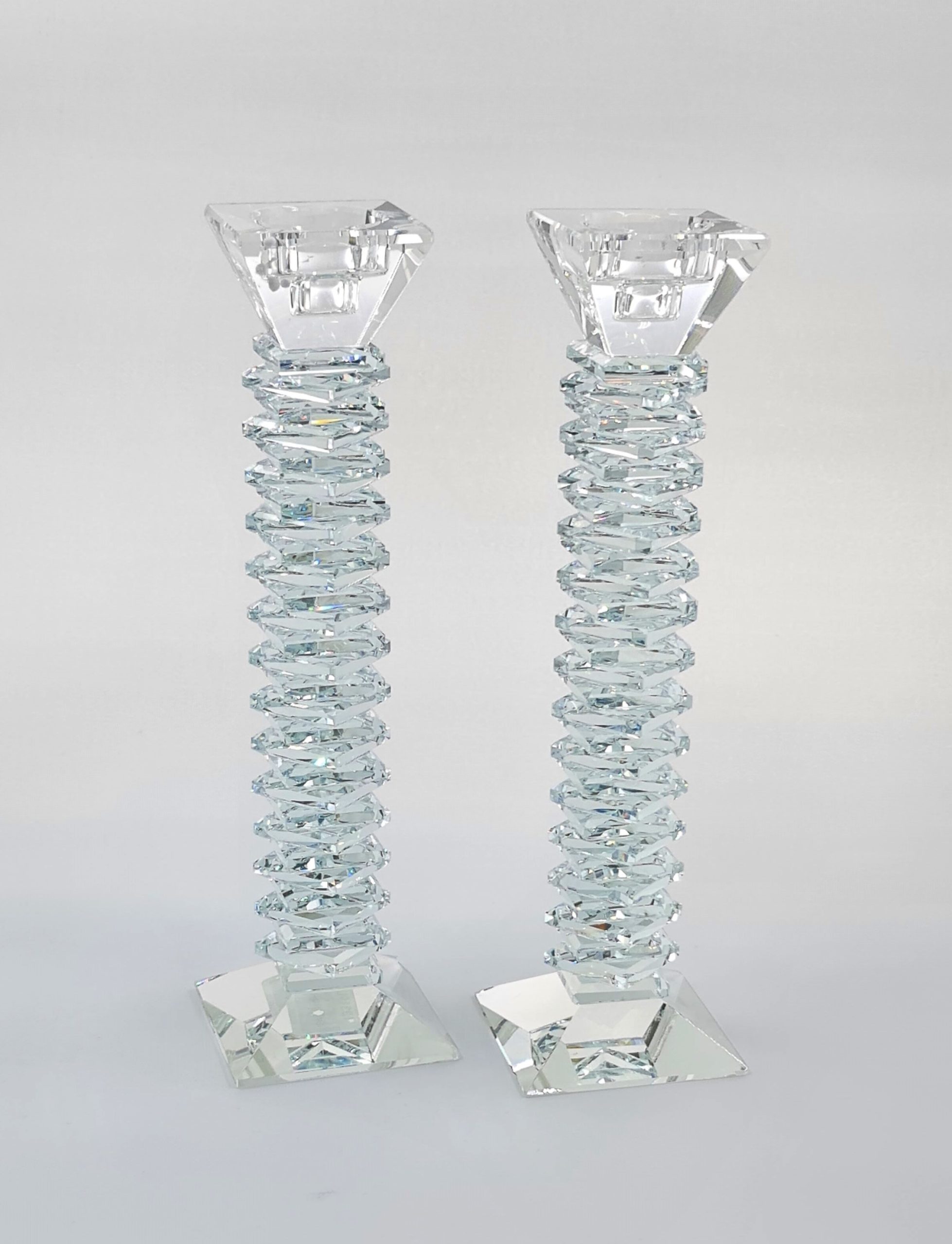 CRYSTAL STEP PAIR CANDLESTICKS 28.5 CM.