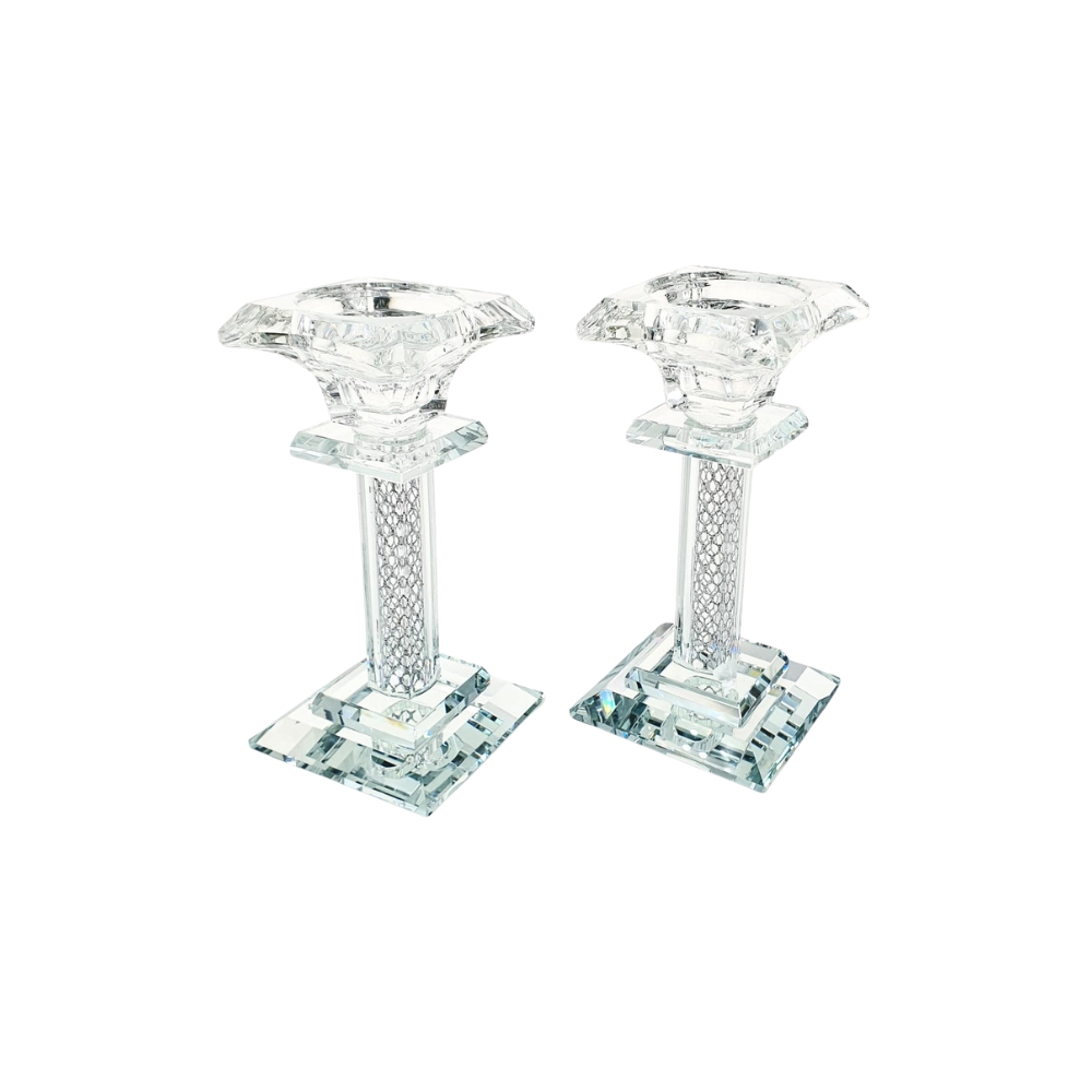 / CRYSTAL/SILVER SPOOL SQUARE PAIR CANDLESTICKS 15 CM.