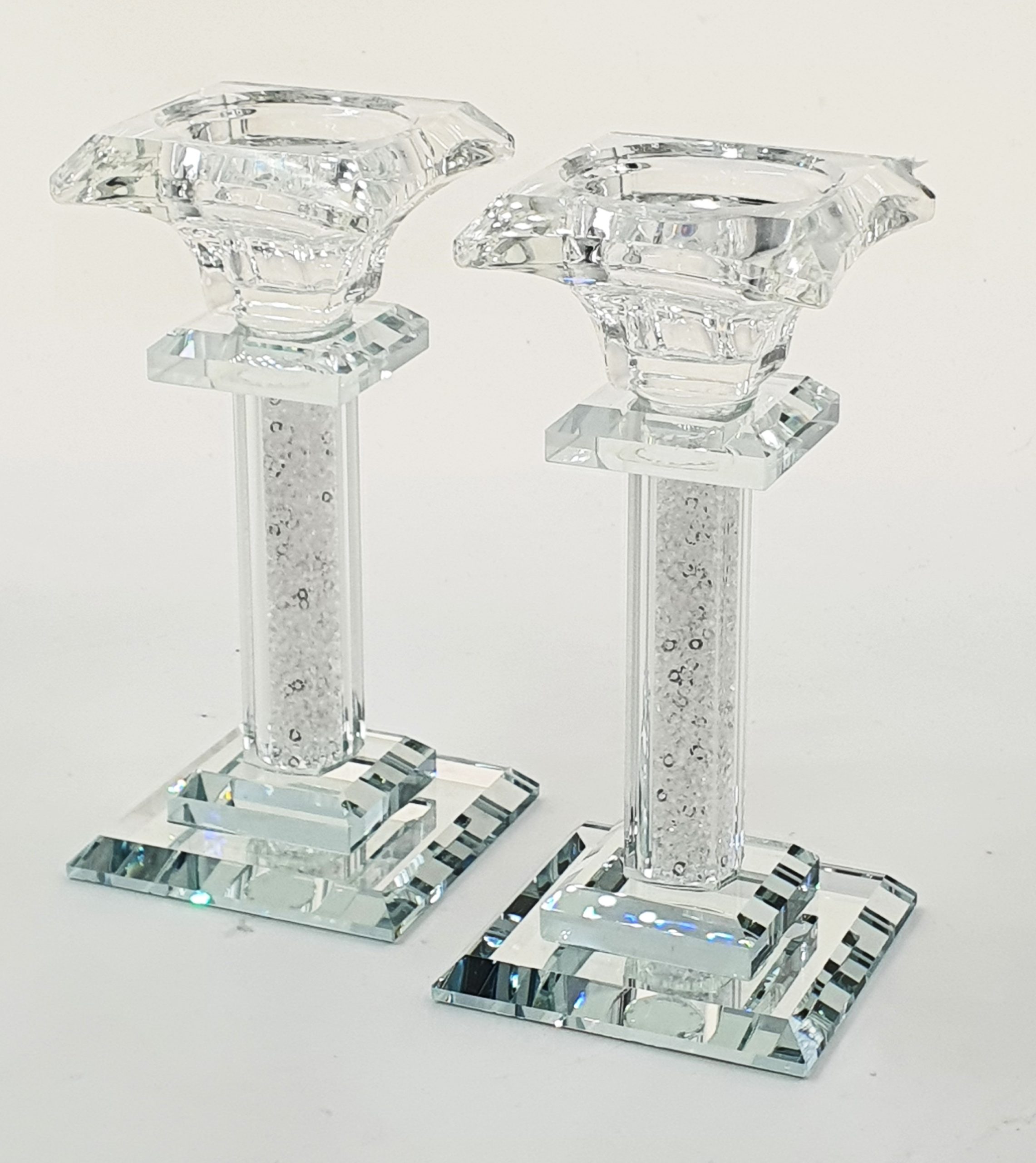 CRYSTAL/WHITE SPARKS SQUARE PAIR CANDLESTICKS 15 CM.