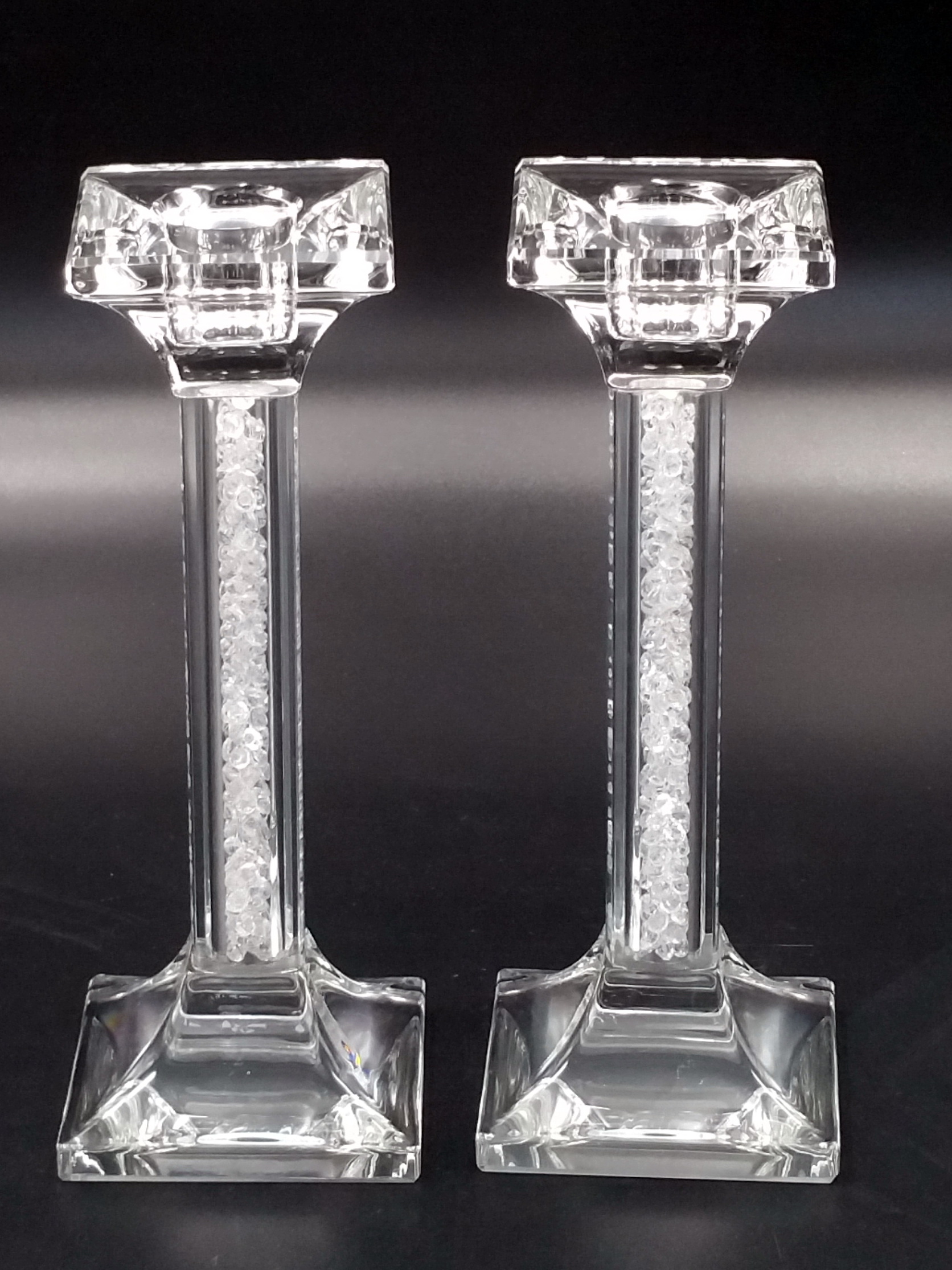 CRYSTAL/WHITE SPARKS SQUARE PAIR CANDLESTICKS 16 CM.