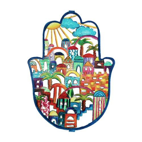 FLAT LARGE ENAMEL LACQUER JERUSALEM HAMSA
