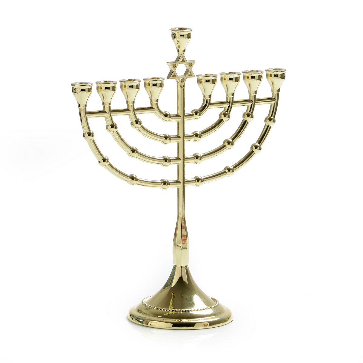 GOLDEN COLOR METAL STAR OF DAVID SMALL MENORA 23.5 CM.