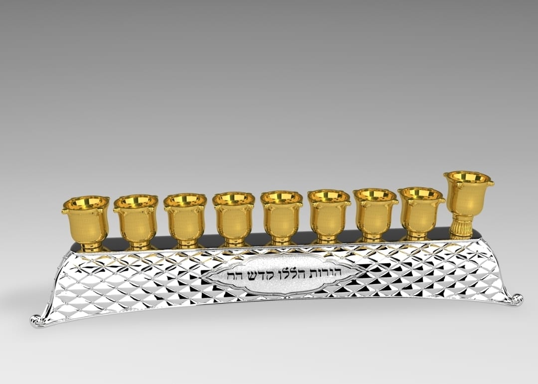 GOLD/SILVER PLATED STRIPE MENORAH 8X30 CM.