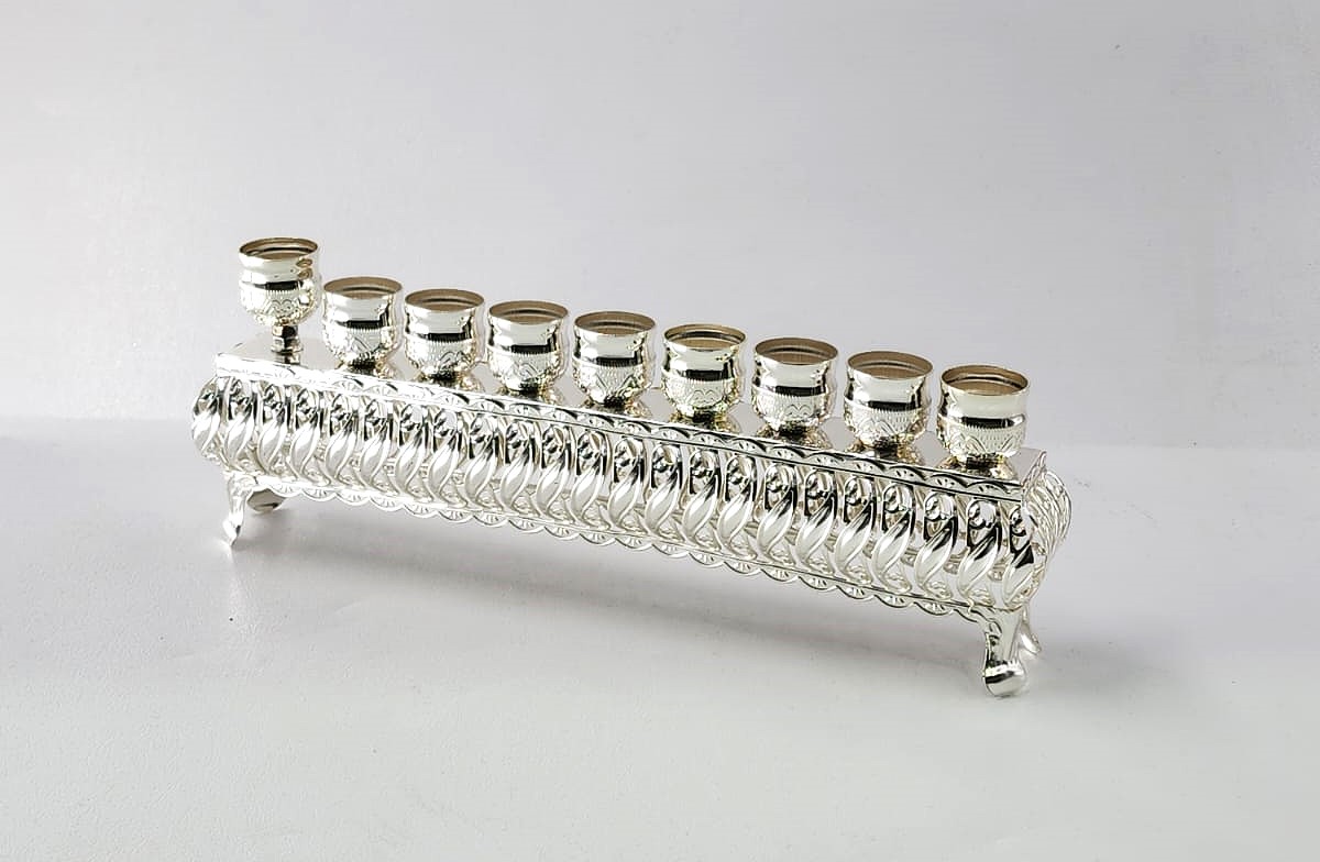 / SILVER PLATED STRIPE MENORAH 10X28 CM.