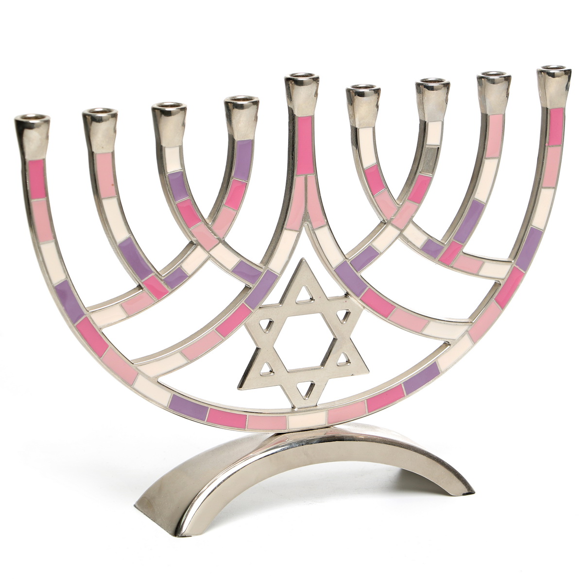PURPLE/PINK METAL MENORAH W/STAR 18 CM.