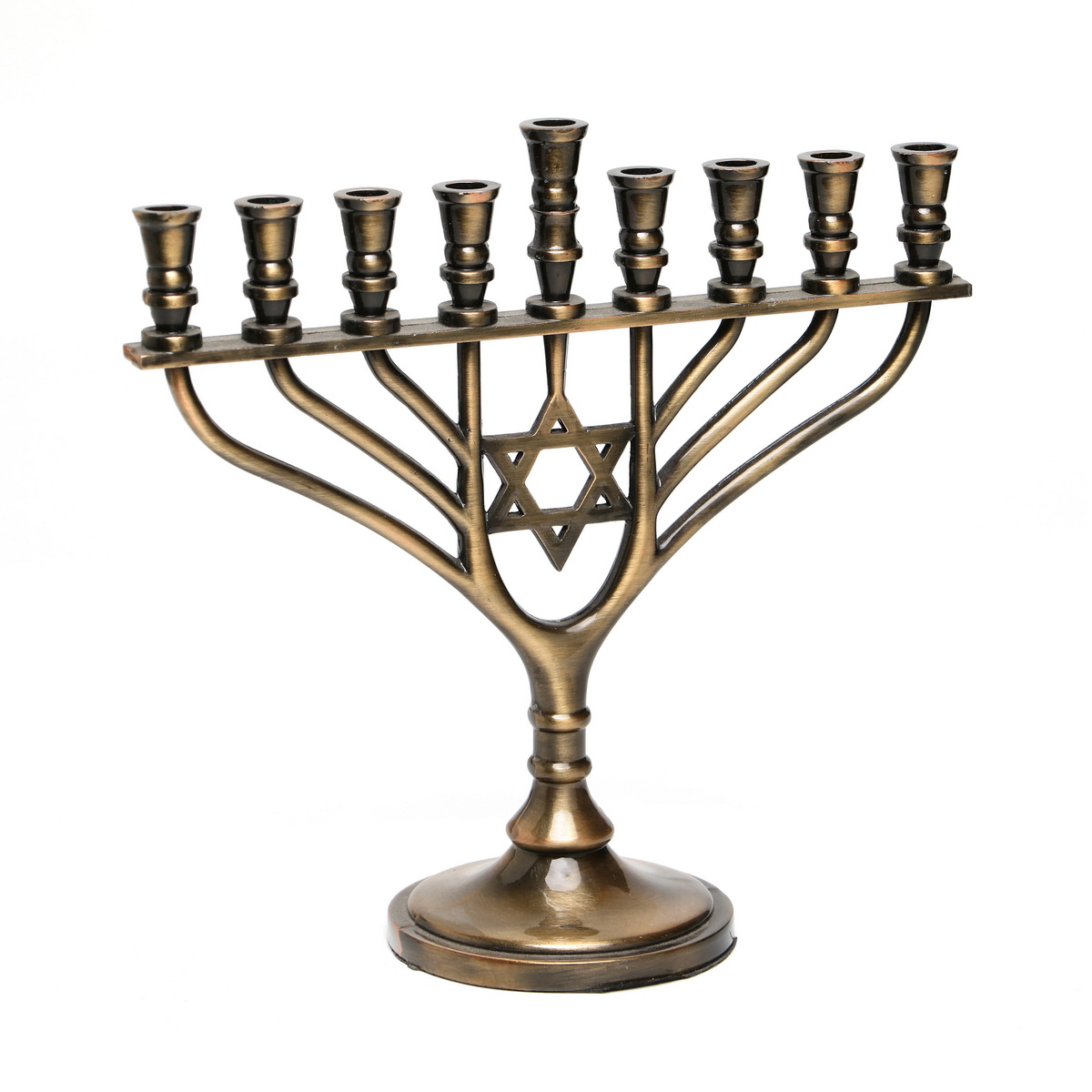 BRASS COLOR METAL MENORAH 18 CM.