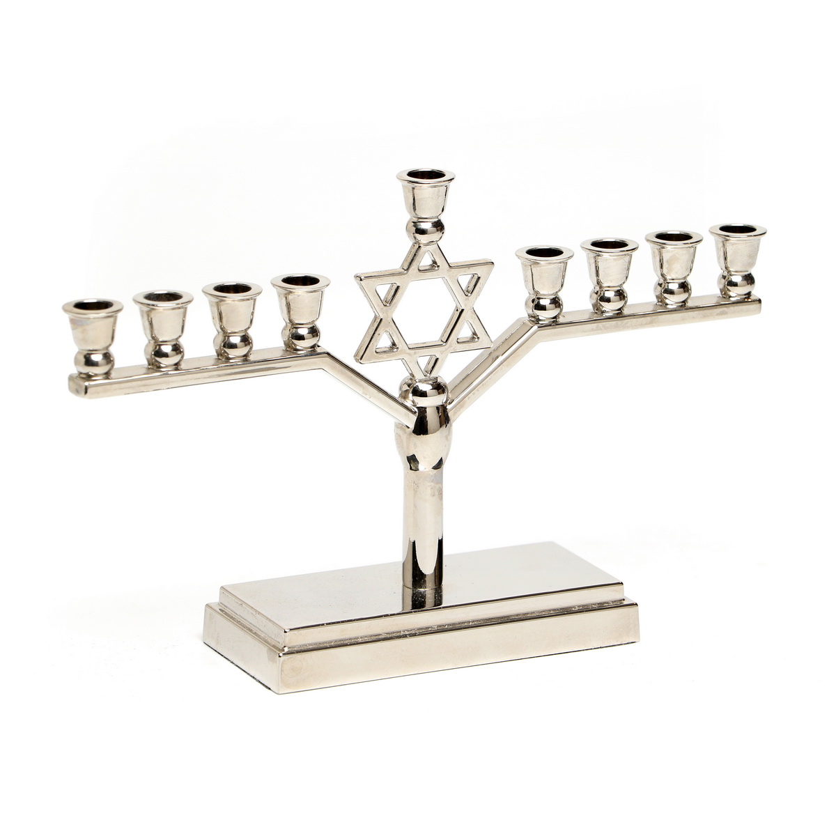 NICKEL COLOR METAL MENORAH W/STAR 12 CM.