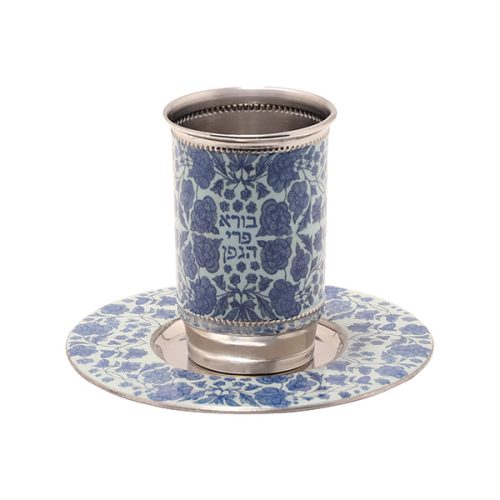 TALL METAL/BLUE FLOWERS DESIGN KIDDUSH CUP