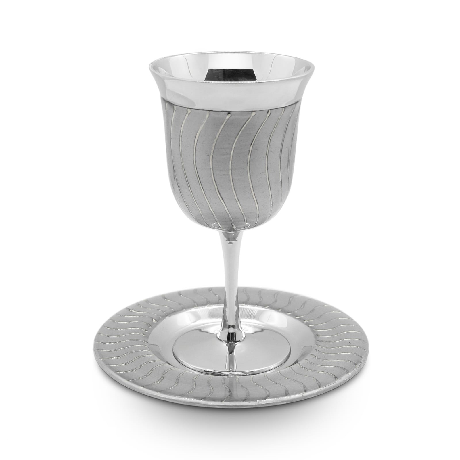 SILVER ENAMEL KIDDUSH CUP/STEM/SAUCER