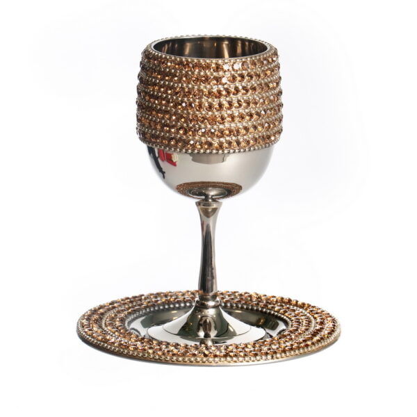 / STAINLESS ST. GOLDEN DIAMONDS KIDUSH CUP/STEM/SAUCER