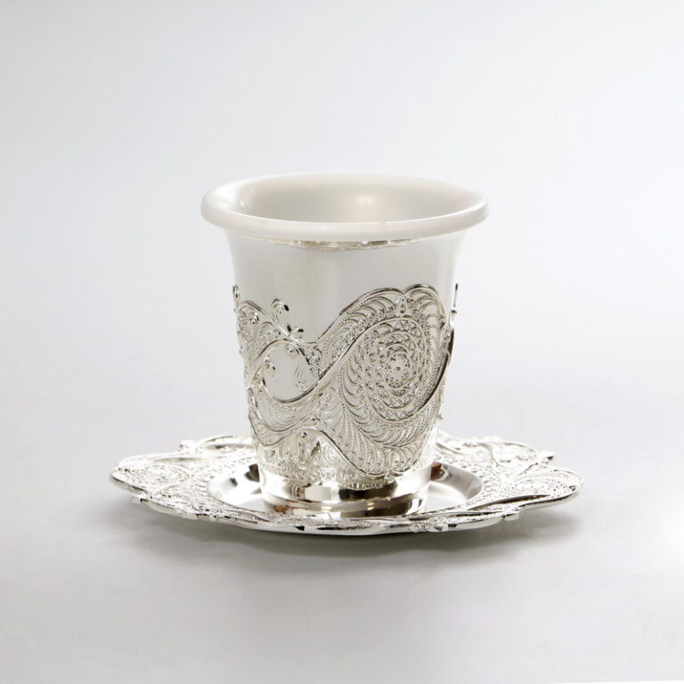 SILVER PLATED & PLASTIC FILIFREE KIDUSH CUP WITH SAUCER