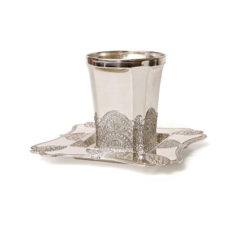 SILVER PLATED FILIGREE KIDUSH CUP WITH SAUCER
