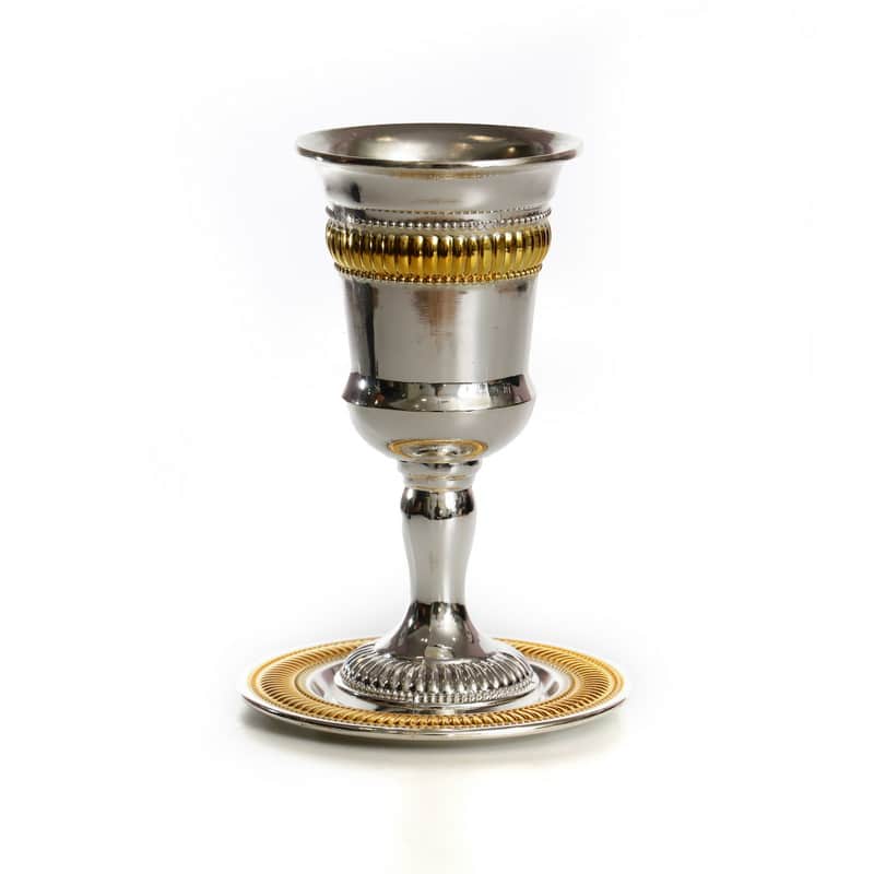 SILVER/GOLD PLATED STRIPES KIDUSH CUP WITH STEM AND SAUCER