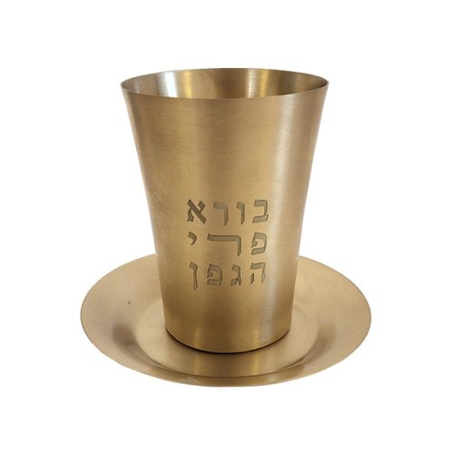 BRUSHED BRASS KIDDUSH CUP/SAUCER