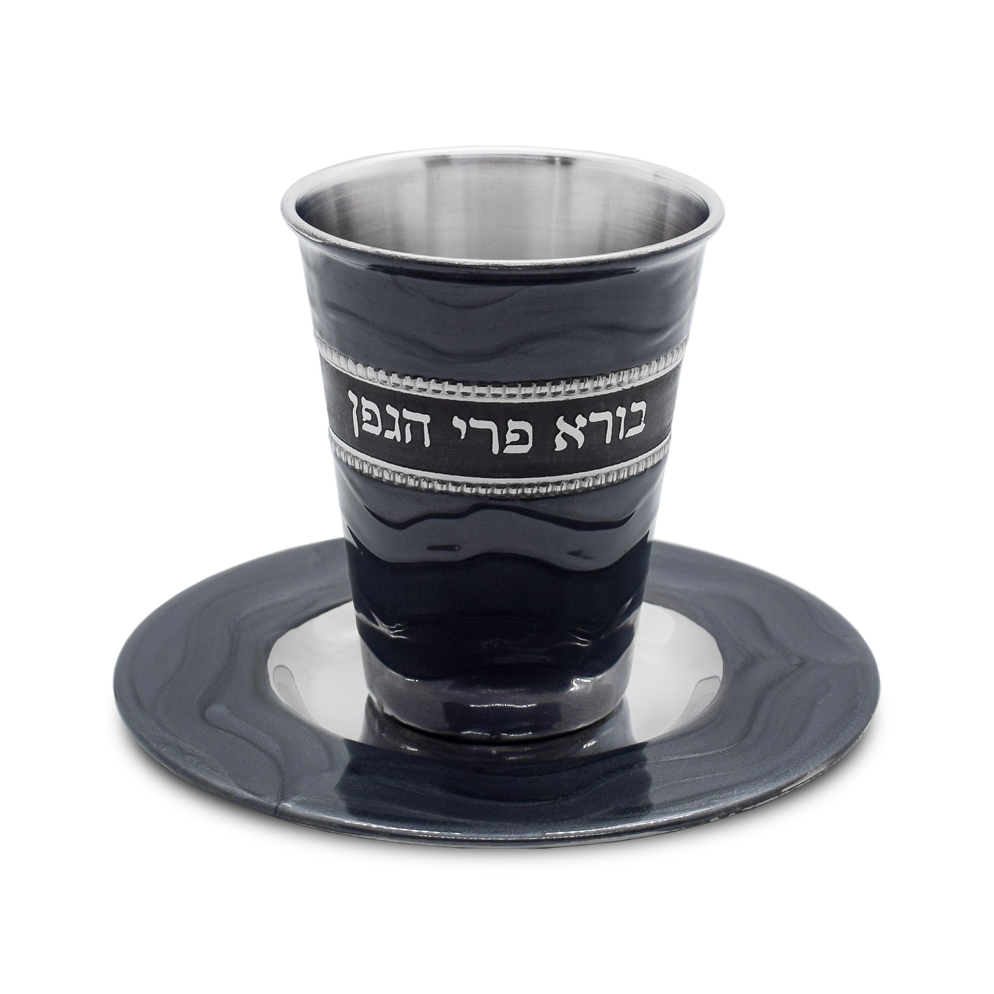 STAINLESS STEEL DARK GREY ENAMEL KIDDUSH CUP/SAUCER