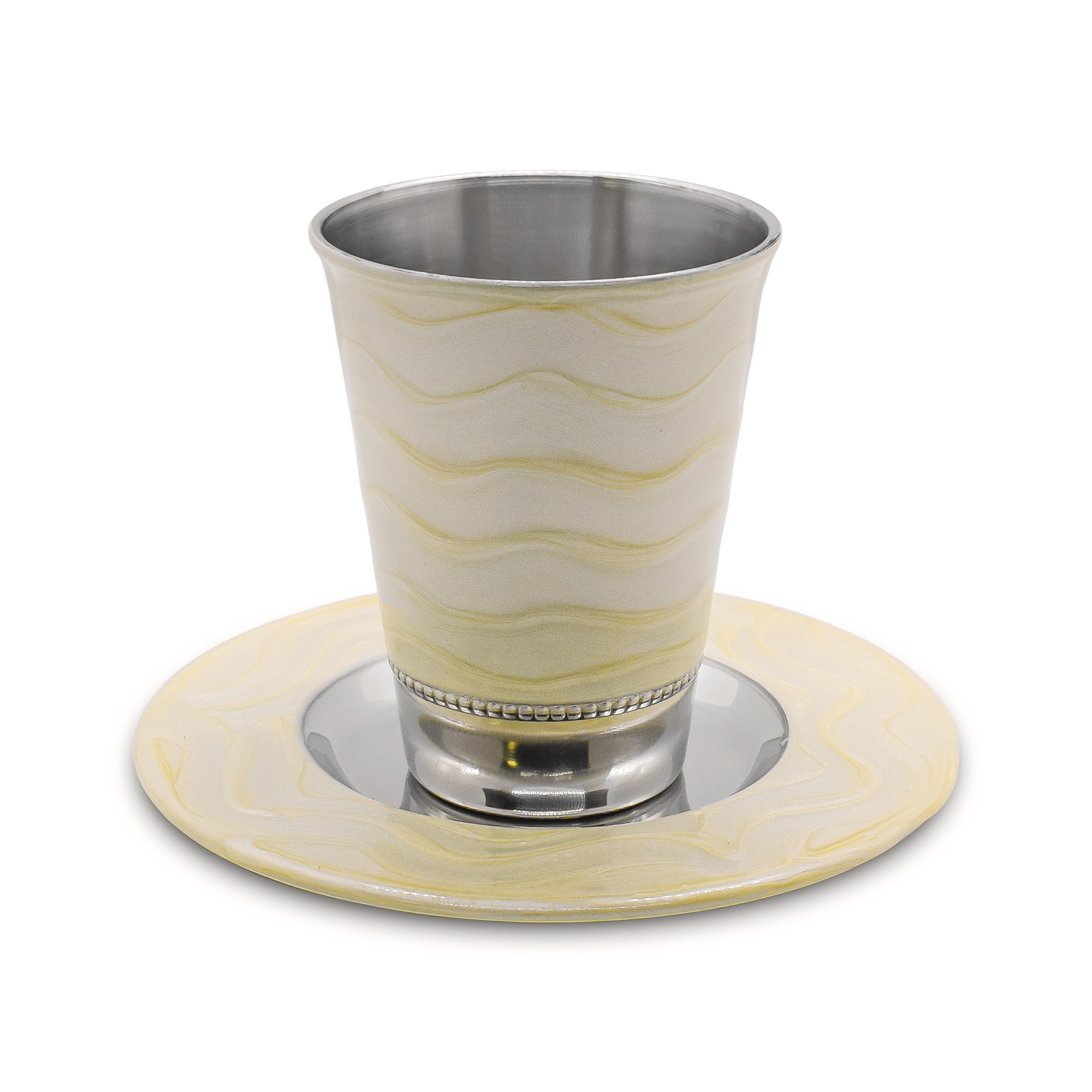 STAINLESS STEEL/CREAM ENAMEL KIDDUSH CUP/SAUCER
