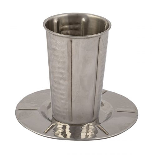 STAINLESS STEEL/HAMMERWORK VERTICAL STRIPES KIDDUSH CUP