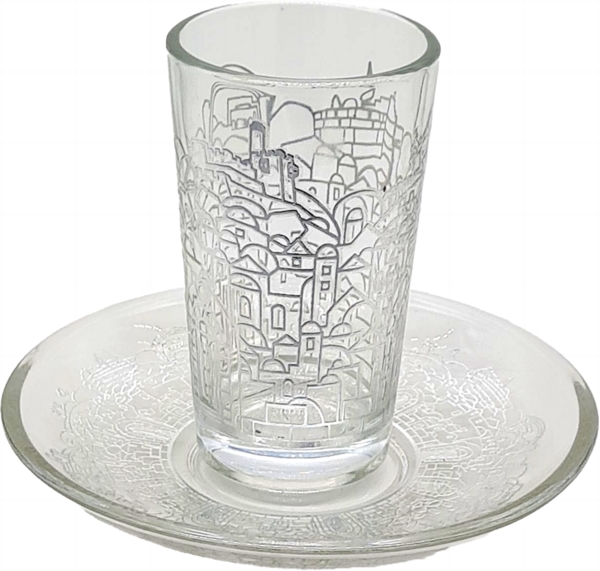 SILVER ETCHING JERUSALEM KIDDUSH CUP/SAUCER