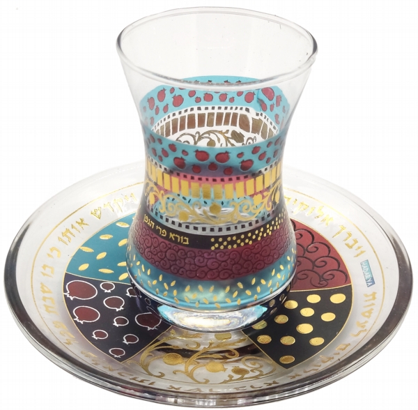 COLORFUL TONES ETCHING KIDDUSH CUP/SAUCER
