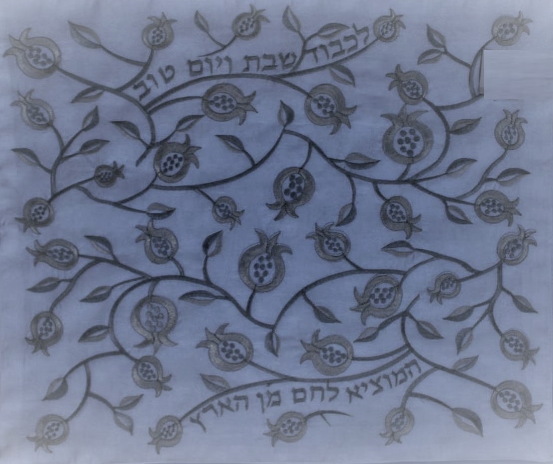 / SILVER EMB. POMEGRANATES BAMBOO FIBER WHITE CHALLA COVER