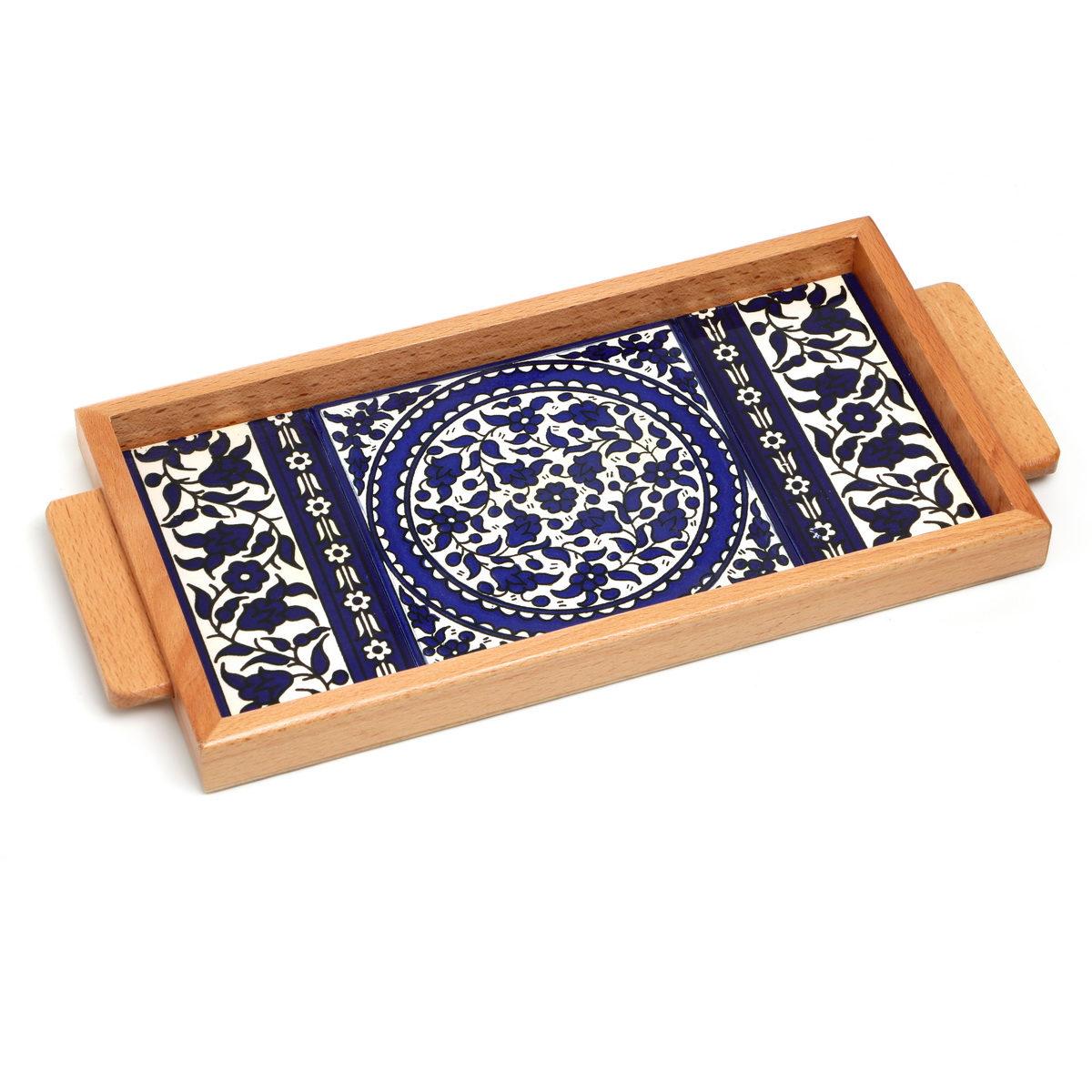 RECTANGLE ARMENIAN FLOWERS HANDLES FRAMED TRAY