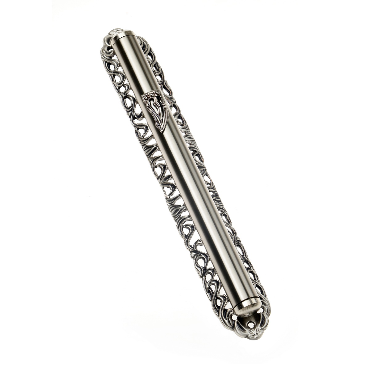 PEWTER FINISH FILIGREE BACK MEZUZAH