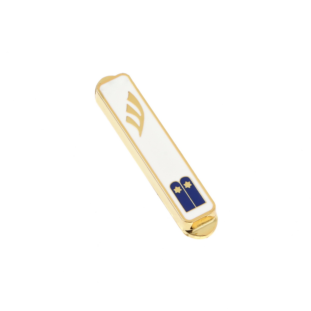 / TEN COMMANDMENTS GOLDEN WHITE ENAMEL CAR MEZUZAH
